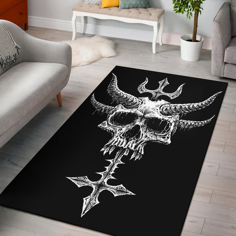 Satanic Skull Demon Horn Inverted Cross Dagger Area Rug