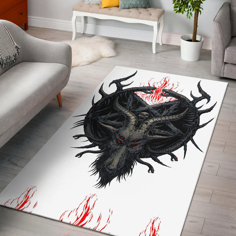 Skull Demon Satanic Goat Satanic Pentagram Serpent Flame Area Rug Silver Red