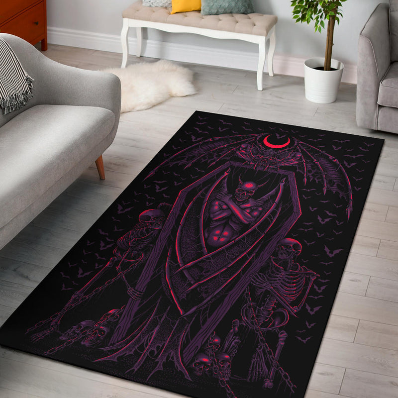 Bat Skull Skeleton Coffin Shrine Area Rug