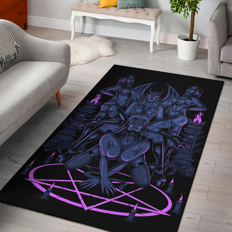 Skull Satanic Pentagram Serpent Impaled Erotic Demon Foursome Area Rug Erotic Blue Pink