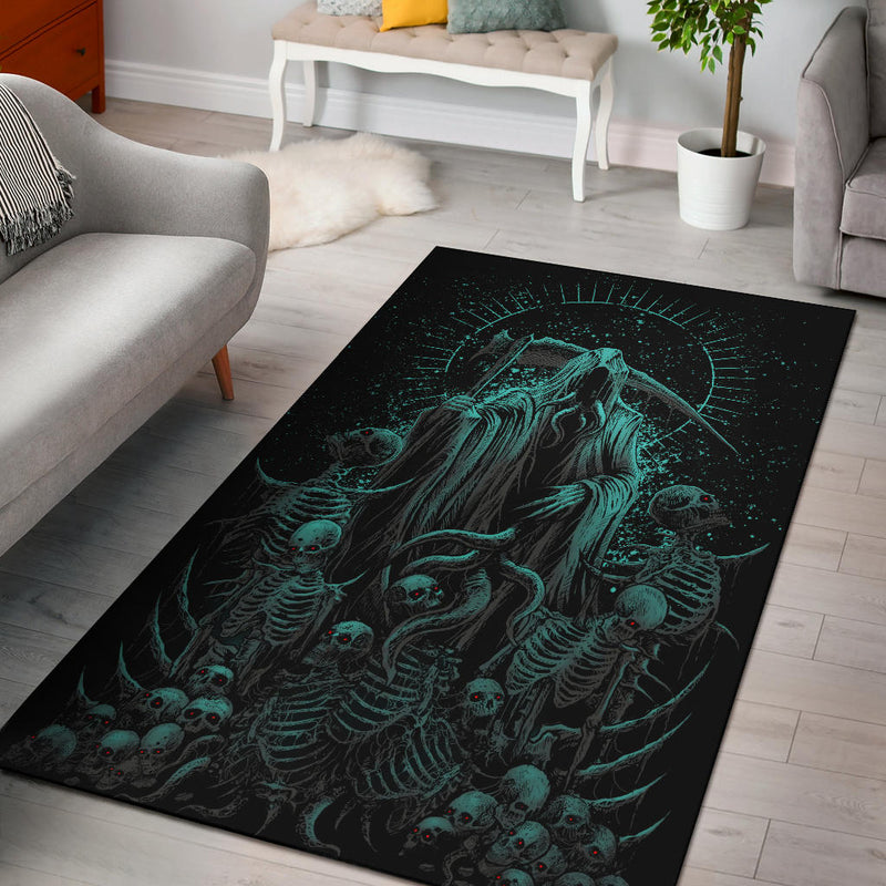 Skull Reaper Claw Demon Area Rug Silver Blue