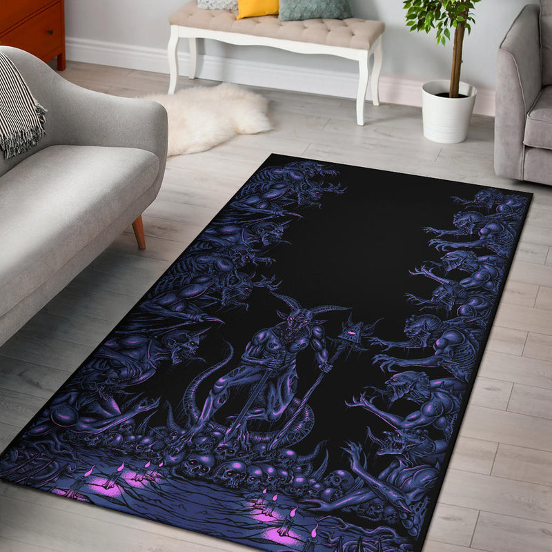 Skull Satanic Malevolent Cyclops Baphomet Goat Demon Onslaught Area Rug Awesome Night Blue Pink