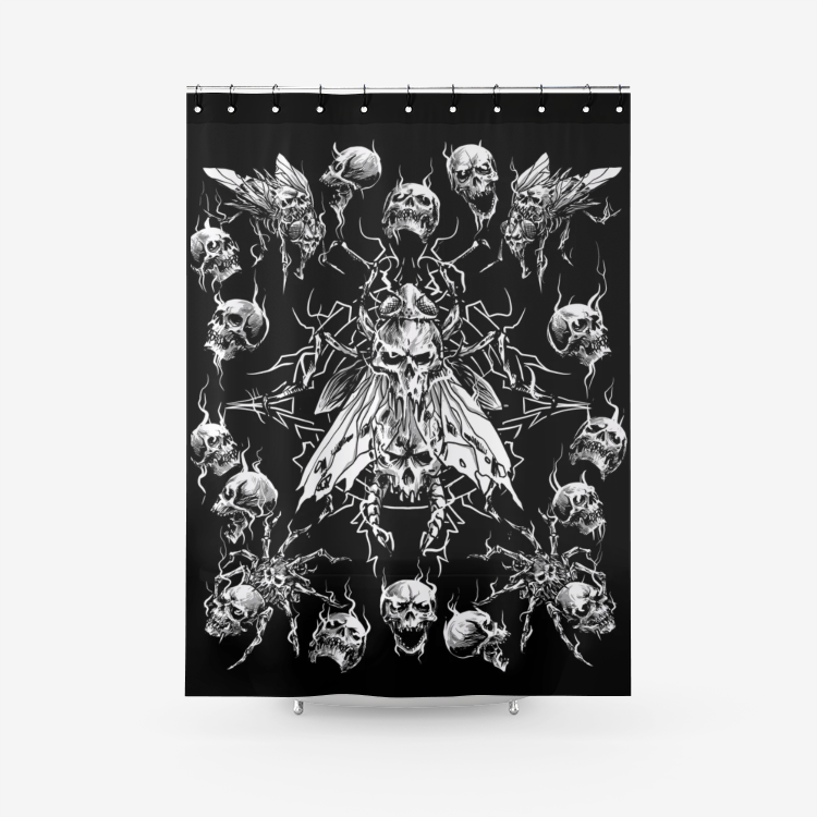 Skull Smoke Evil Goth Spider Fly Textured Fabric Shower Curtain