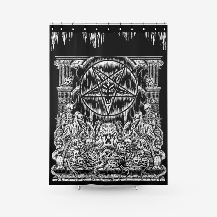 Skull Skeleton Demon Satanic Pentagram Drip Shrine Textured Fabric Shower Curtain
