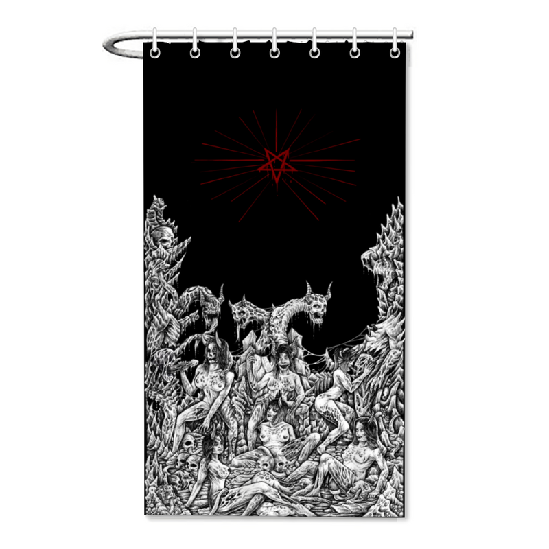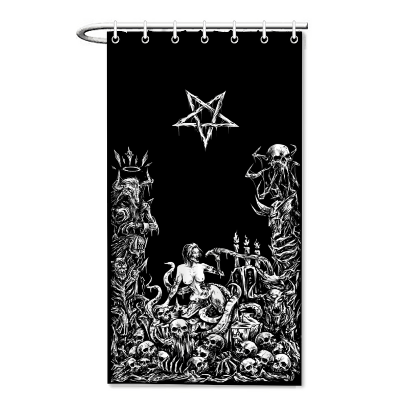 Skull Satanic Pentagram Demon Orgy Of The Damned Bachelor Size Shower Curtain 35.4" x 71"