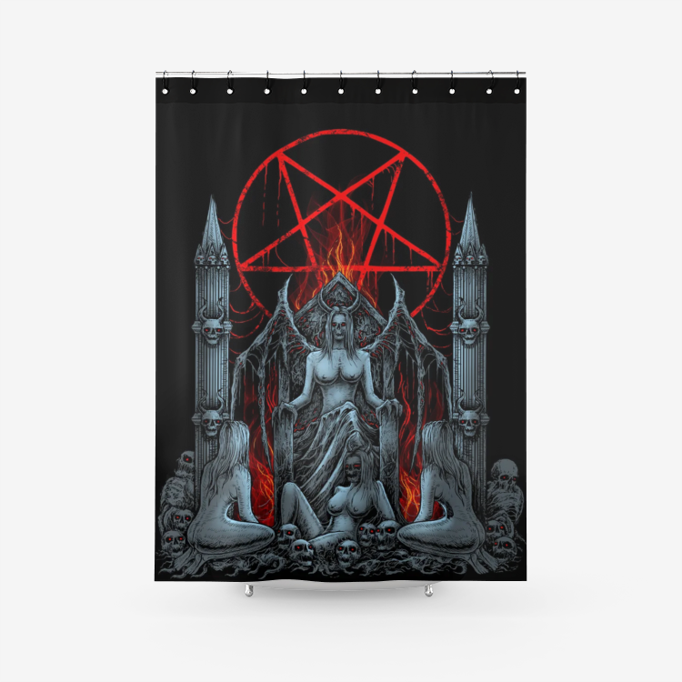 Skull Satanic Pentagram Lust Throne Textured Fabric Shower Curtain Color Version