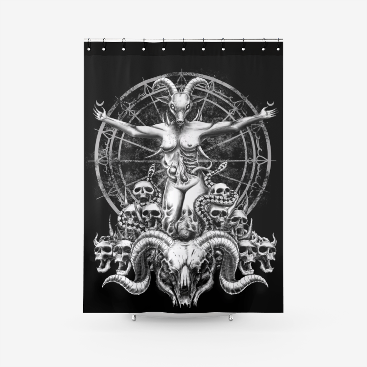 Skull Satanic Goat Demon Woman Serpent Textured Fabric Shower Curtain