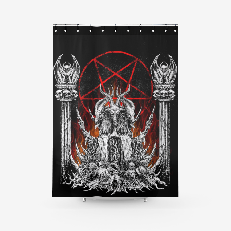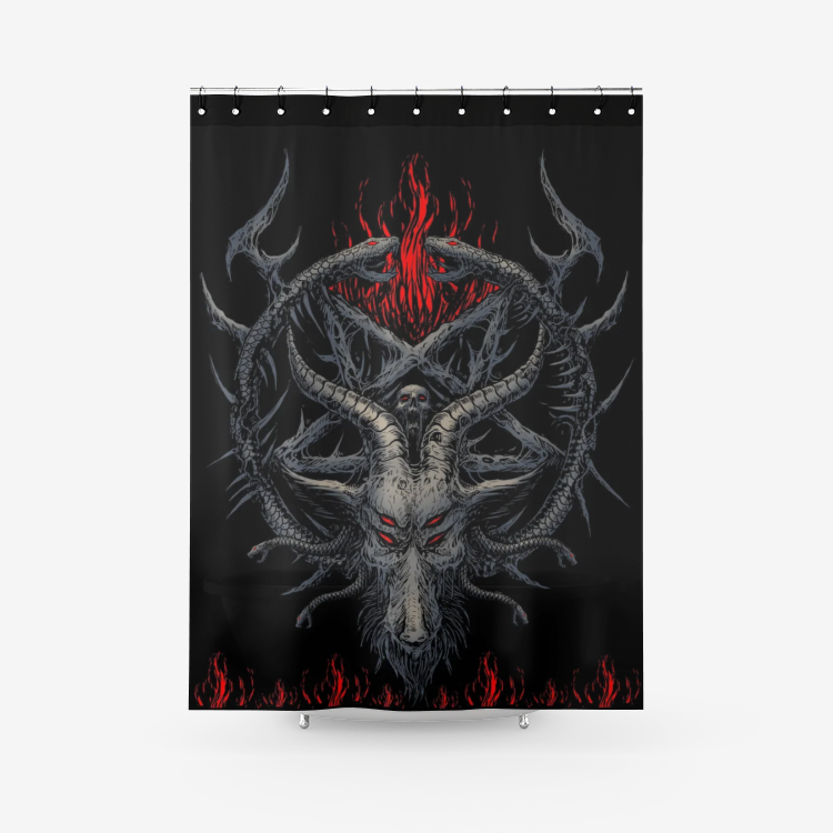 Skull Satanic Goat Satanic Pentagram Demon Serpent Textured Fabric Shower Curtain