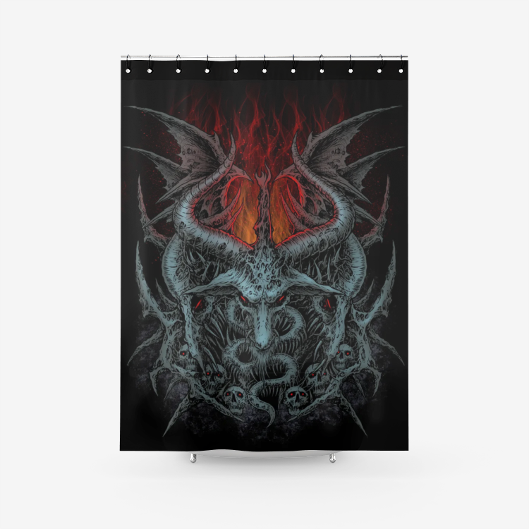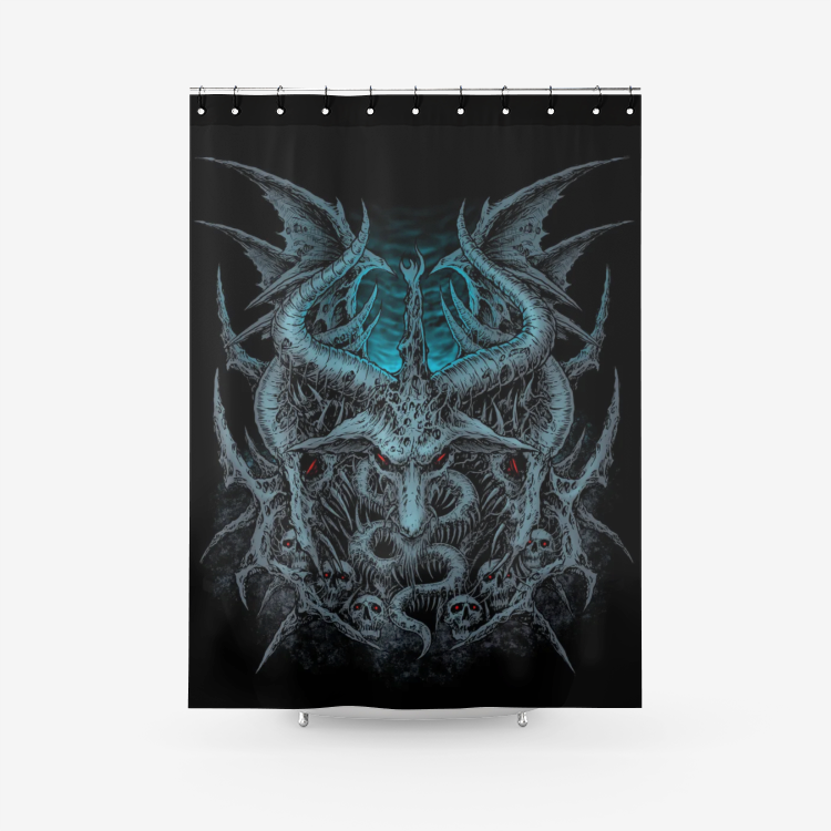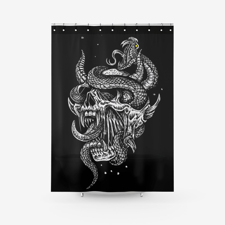 Skull Demon Serpent Textured Fabric Shower Curtain