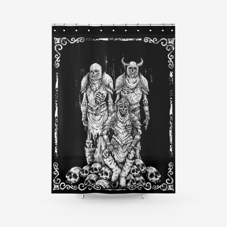 Skull Skeleton Viking Textured Fabric Shower Curtain