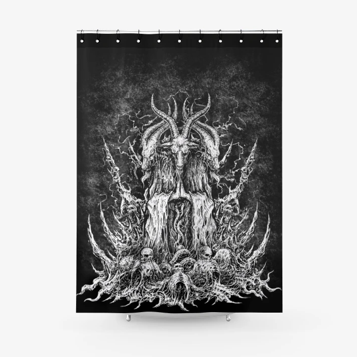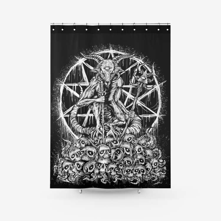 Skull Satanic Goat Textured Fabric Shower Curtain Original Black And White