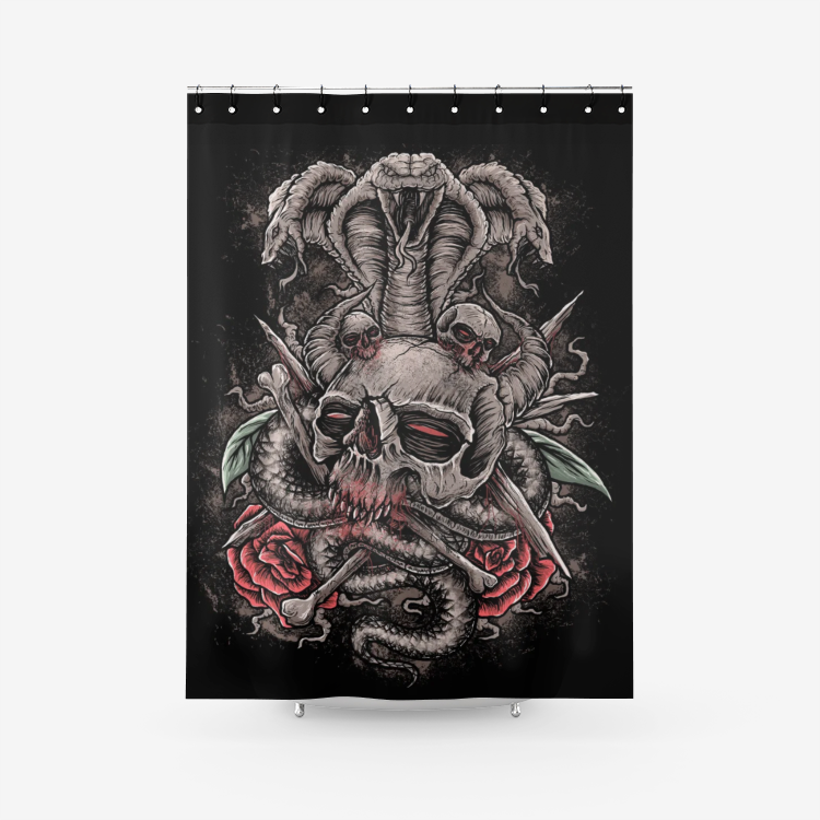 Skull Serpent Textured Fabric Shower Curtain Color Version