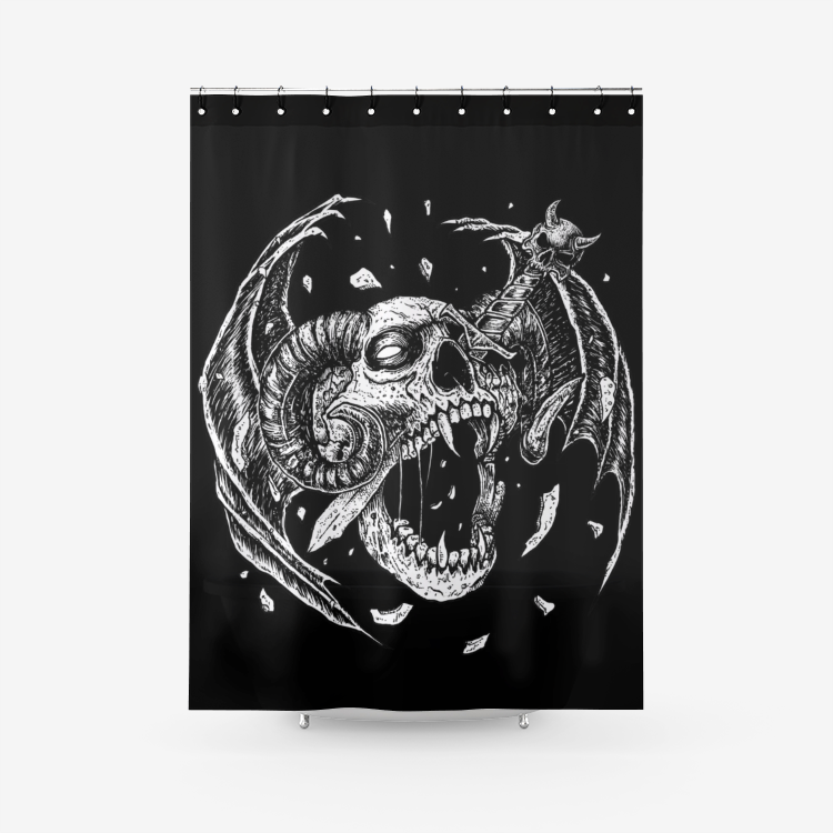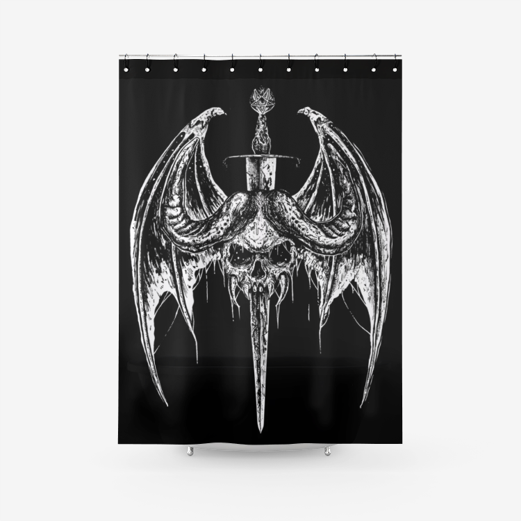 Skull Gothic Bat Wing Demon Sword Textured Fabric Shower Curtain