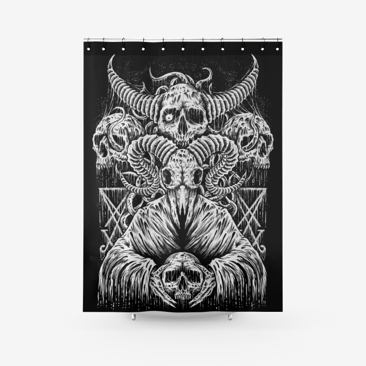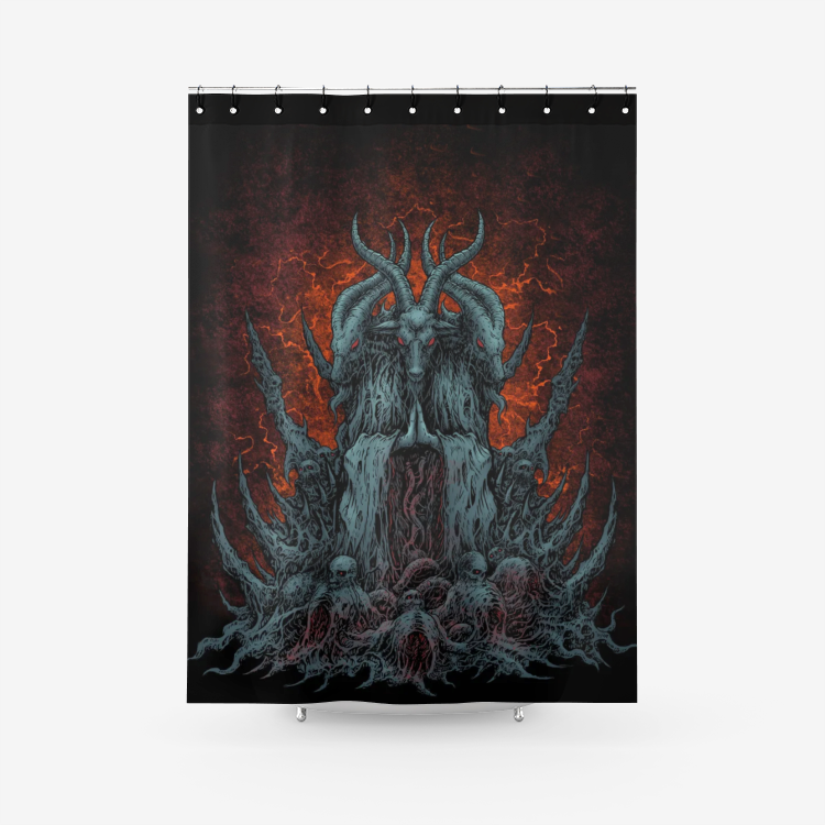 Skull Demon Satanic Goat Textured Fabric Shower Curtain
