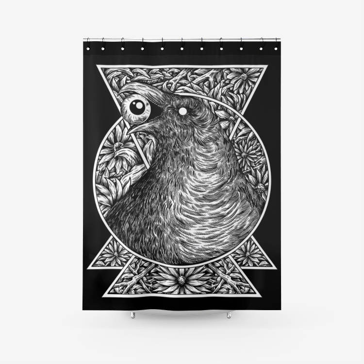 Gothic Black Crow Eye Textured Fabric Shower Curtain