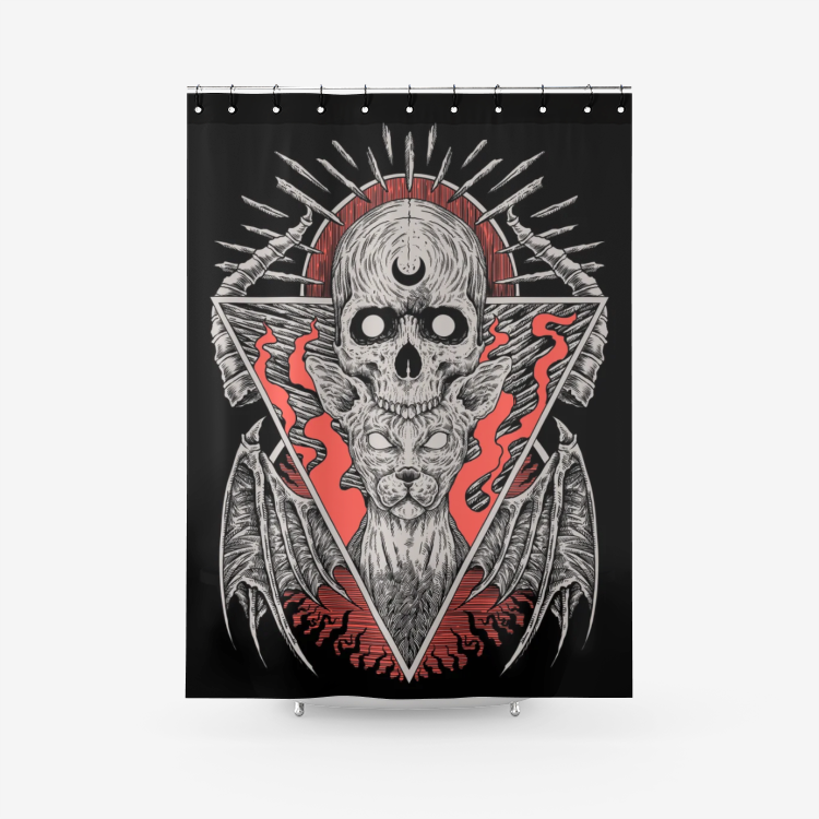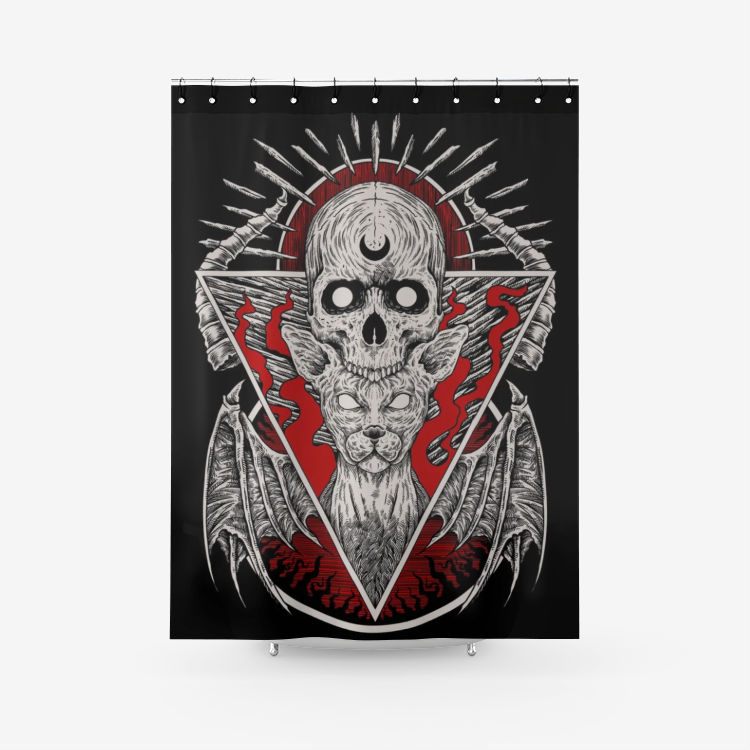 Skull Gothic Occult Cat Textured Fabric Shower Curtain Color Version