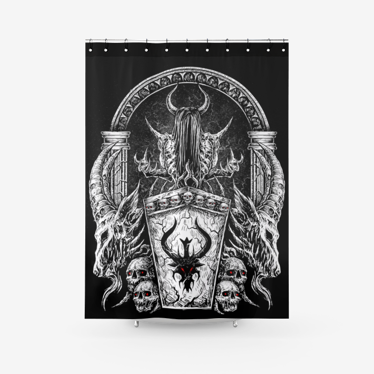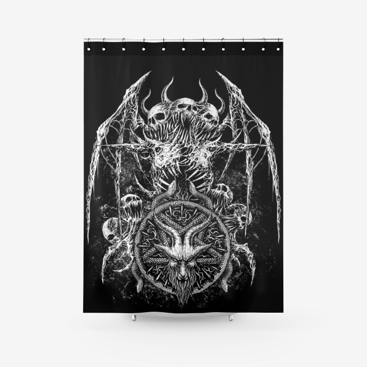Skull Satanic Bat Wing Demon Goat Satanic Pentagram Serpent Textured Fabric Shower Curtain