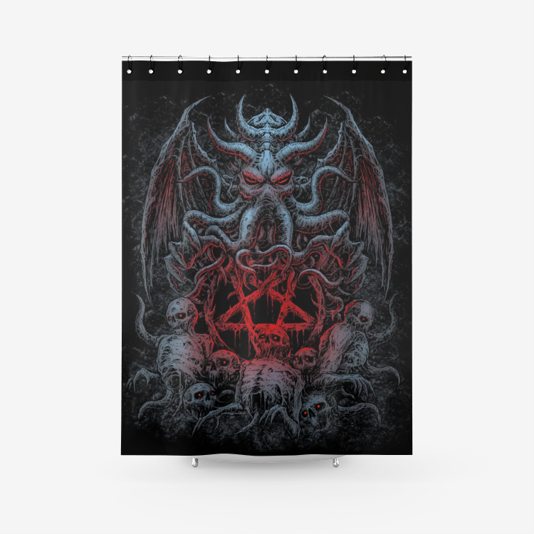 Skull Skeleton Demon Octopus Satanic Pentagram Textured Fabric Shower Curtain Color Red Pentagram