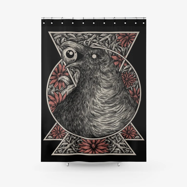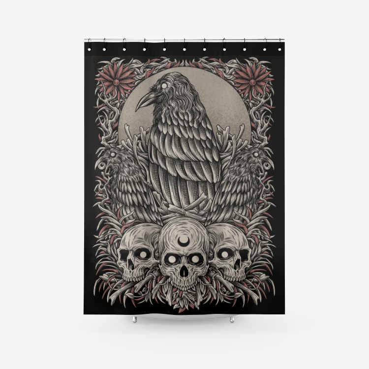 Skull Gothic Occult Crow Textured Fabric Shower Curtain Color Version