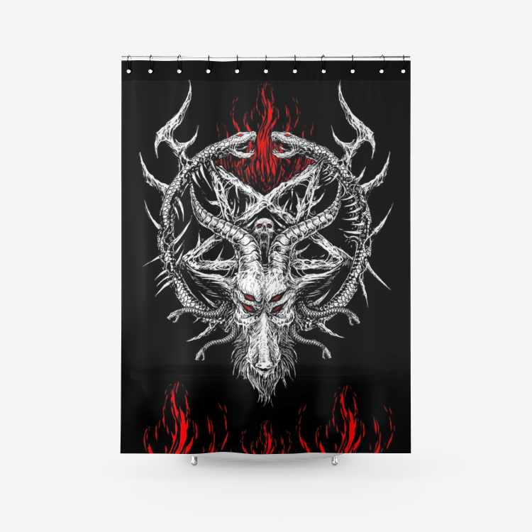 Skull Satanic Goat Satanic Pentagram Demon Serpent Flame Textured Fabric Shower Curtain