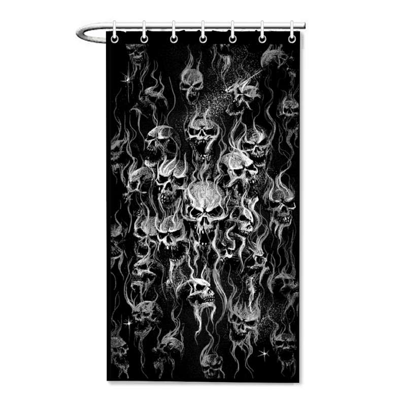 Smoke Skull Bachelor Size Shower Curtain 35.4" x 71" Black And White
