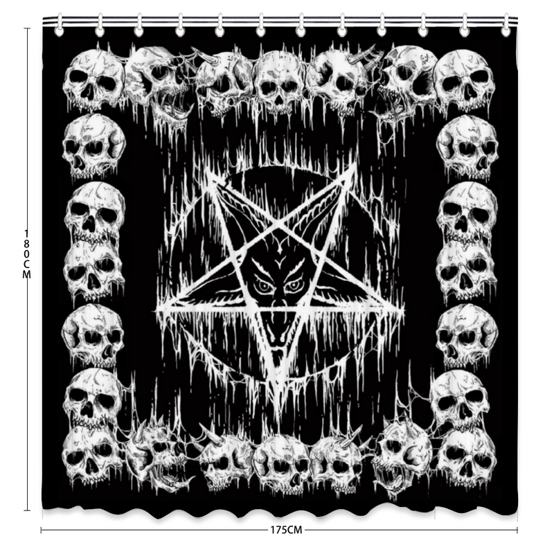 Skull Satanic Pentagram Ultimate Black Metal Lover Demon Shower Curtain 71" x 69"