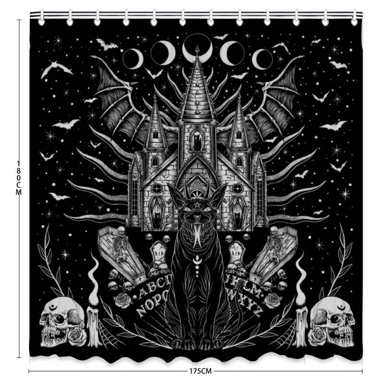 Skull Skeleton Diabolic Cat Coffin Bat Night House Ouija board Style Coffin Shower Curtain 71" x 69"