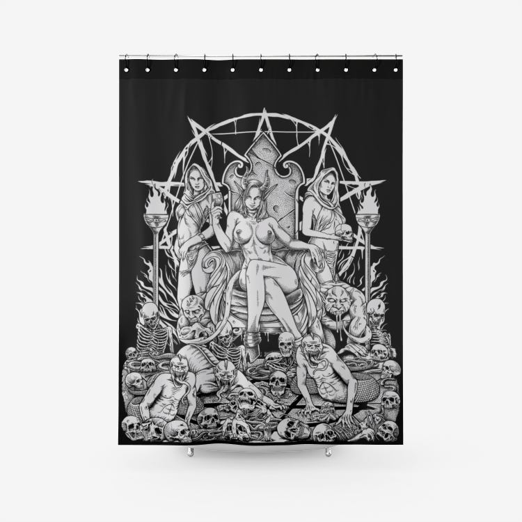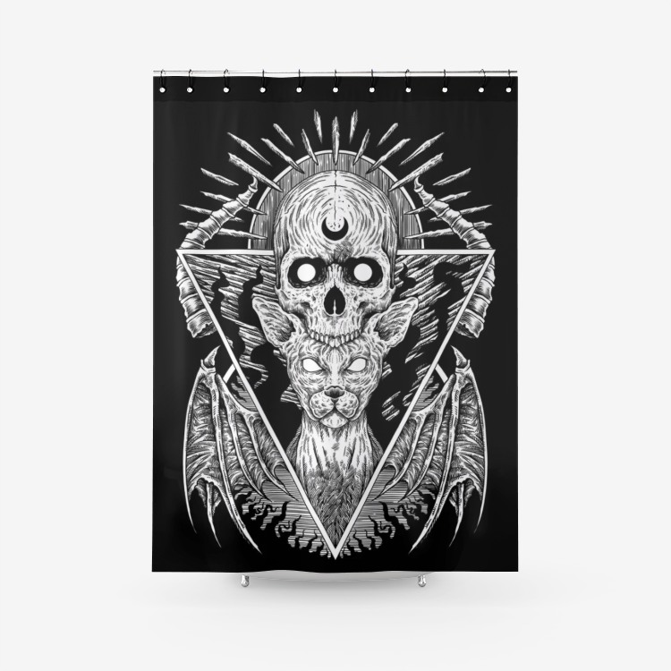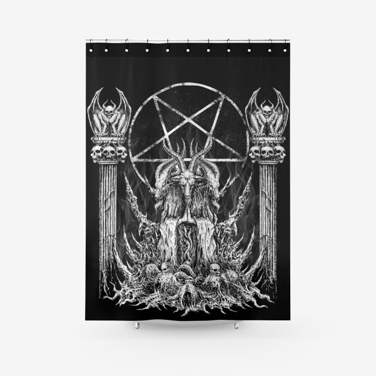 Satanic Pentagram Satanic Goat Lust God Textured Fabric Shower Curtain Color Version 2 Sizes Same Price!