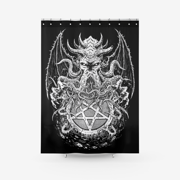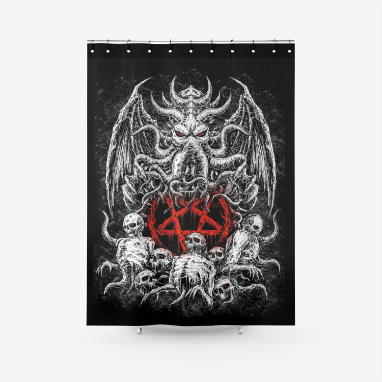 Skull Satanic Pentagram Demon Octopus Textured Fabric Shower Curtain