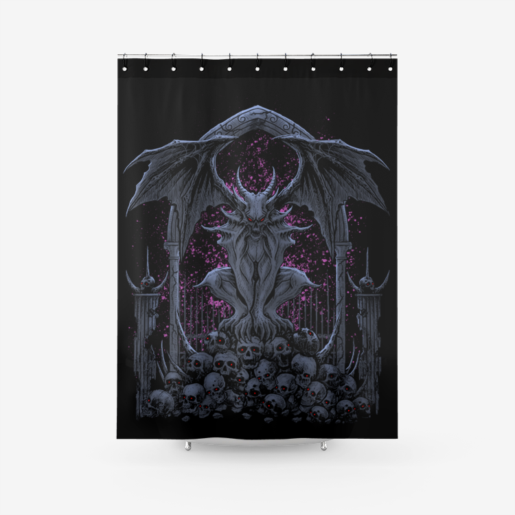 Skull Batwing Gargoyle Demon Textured Fabric Shower Curtain Awesome Night Blue Pink