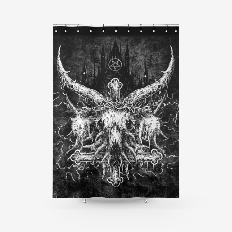Skull Skeleton Demon Crowned Satanic Goat With Satanic Pentagram Church Textured Fabric Shower Curtain