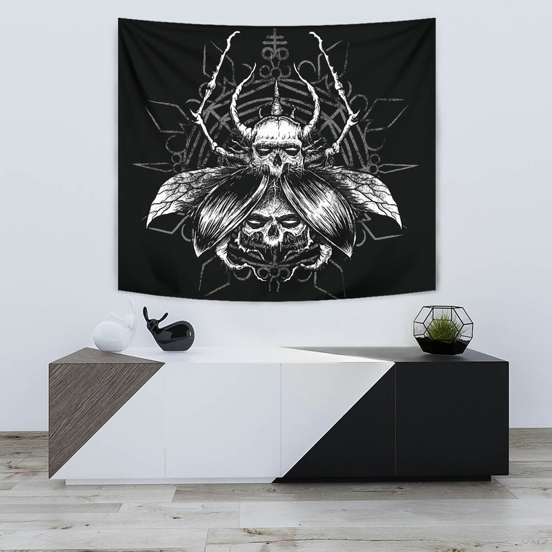 Skull Gothic Satanic Fly Large Wall Tapestry