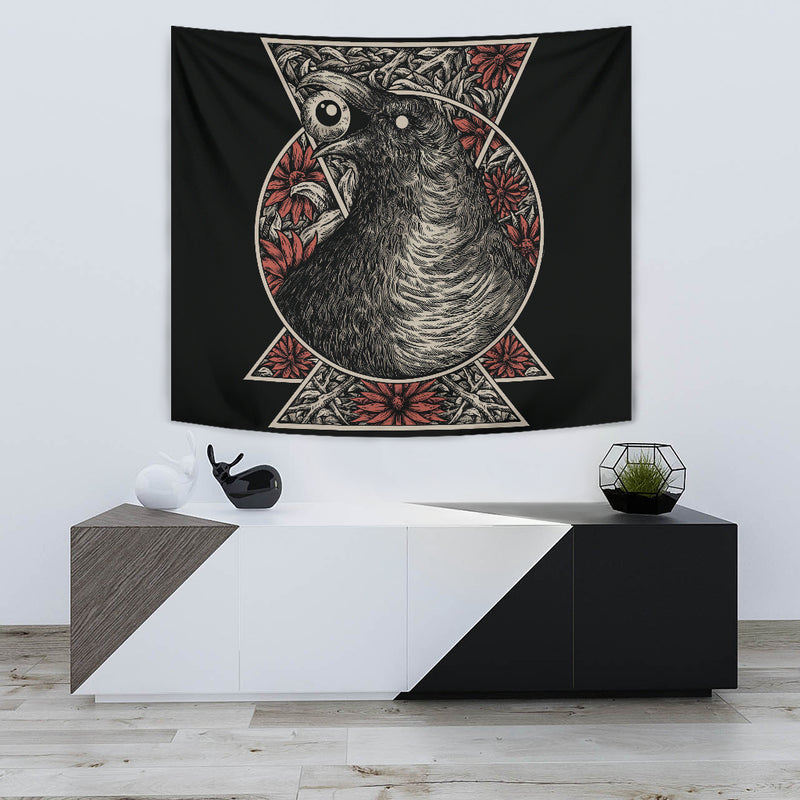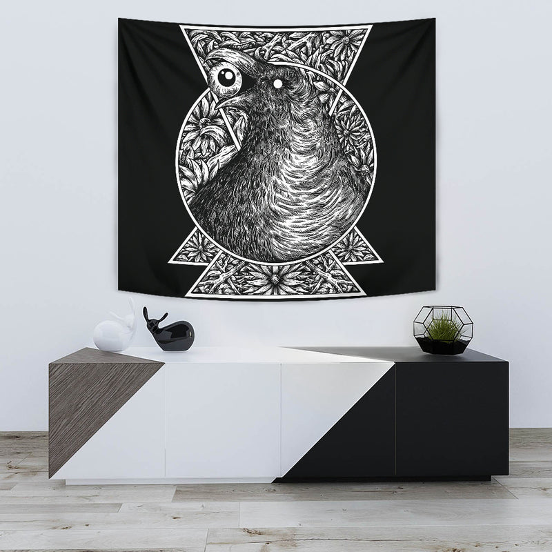 Gothic Occult Black Crow Eye Large Wall Tapestry Color Version