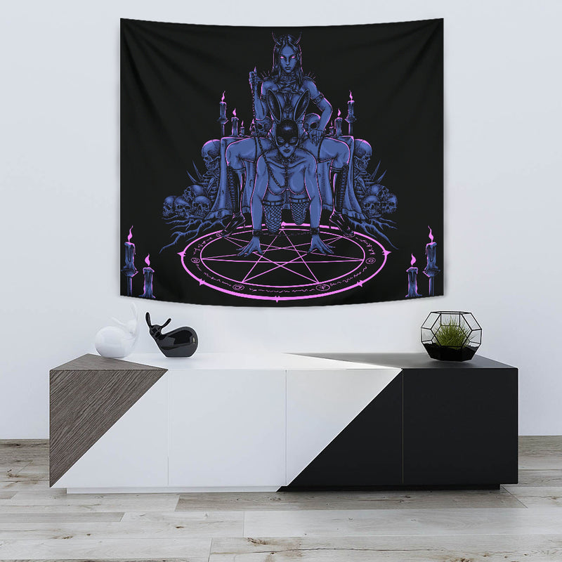 Skull Satanic Pentagram Candle Chained Erotic Latex Bunny Mask Party Large Wall Decoration Tapestry Wild Sexy Blue Pink