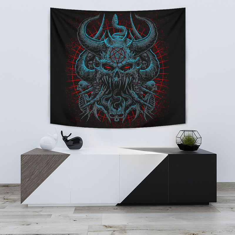 Skull Satanic Pentagram Evil As Hell Demon Serpent Large Wall Decoration Tapestry