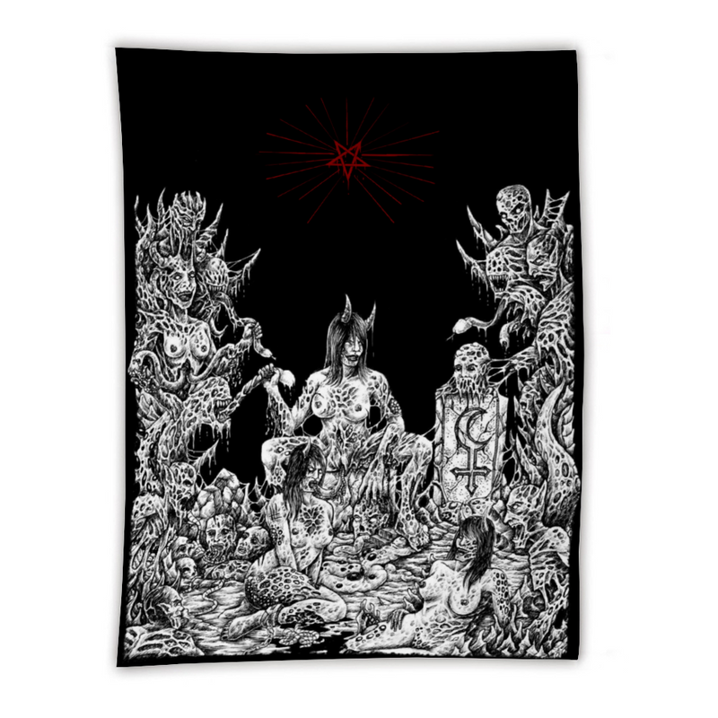 Skull Satanic Goat Huge Wall Tapestry Original Black And White