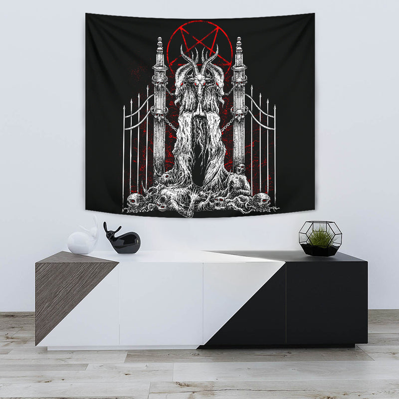Skull Satanic Goat Satanic Pentagram Welcome To Hell Large Wall Decoration Tapestry Black And White Red