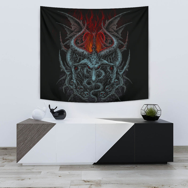 Skull Satanic Goat Bat Wing Demon Flame Large Wall Decoration Tapestry