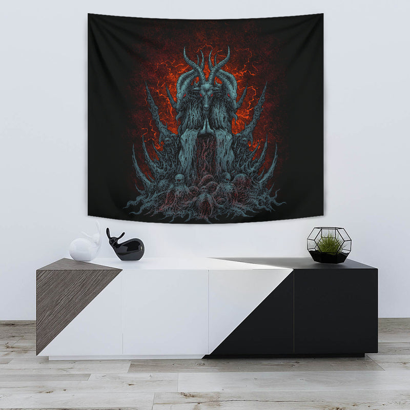 Skull Satanic Goat Wall Tapestry Original Flame Color Version
