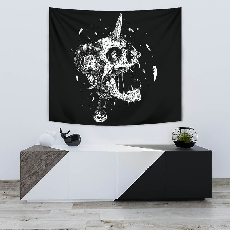 Skull Demon Dagger Exploding Skull Large Wall Tapestry