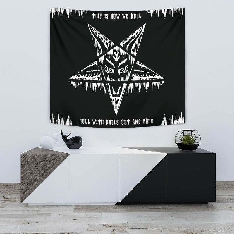 Satanic Pentagram Drip How We Roll Large Wall Tapestry
