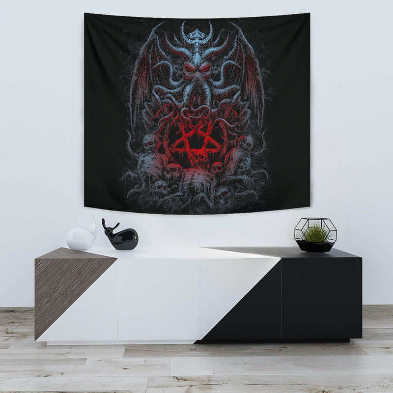 Skull Satanic Pentagram Demon Octopus Large Wall Decoration Tapestry Color Version
