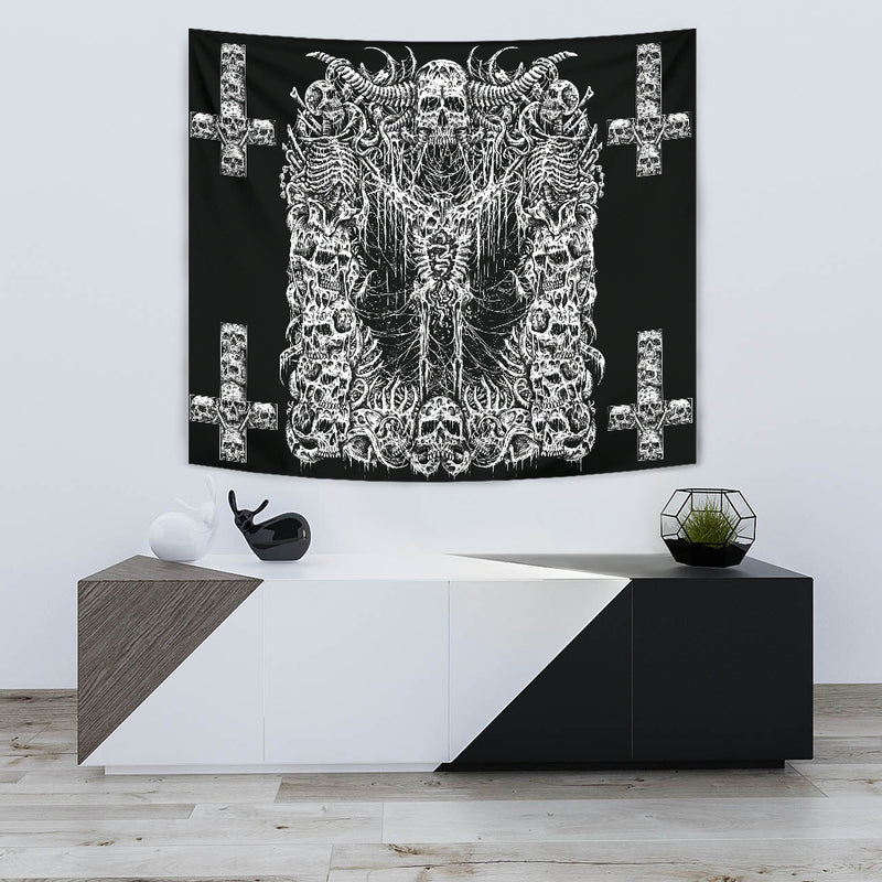 Skull Skeleton Demon Satanic Cross Large Wall Tapestry