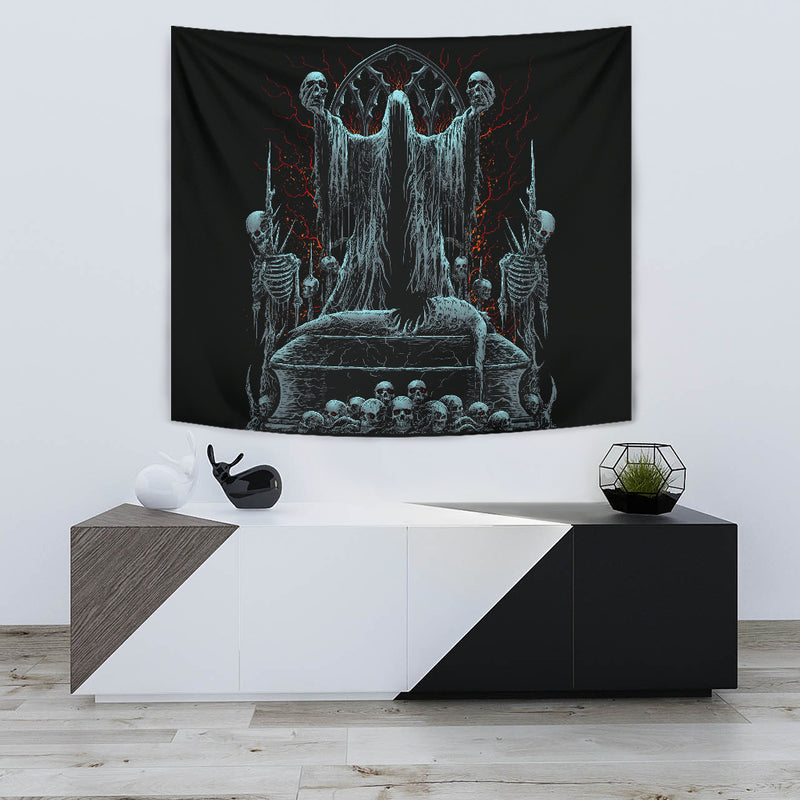 Skull Hooded Demon Impaled Coffin Shrine Large Wall Decoration Tapestry Color Version