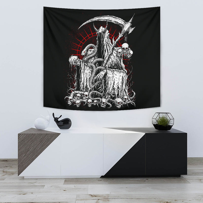 Skull Serpent Hooded Reaper Demon Skull Trophy Large Wall Decoration Tapestry Black And White Red