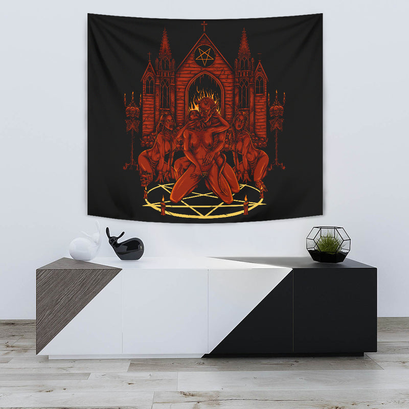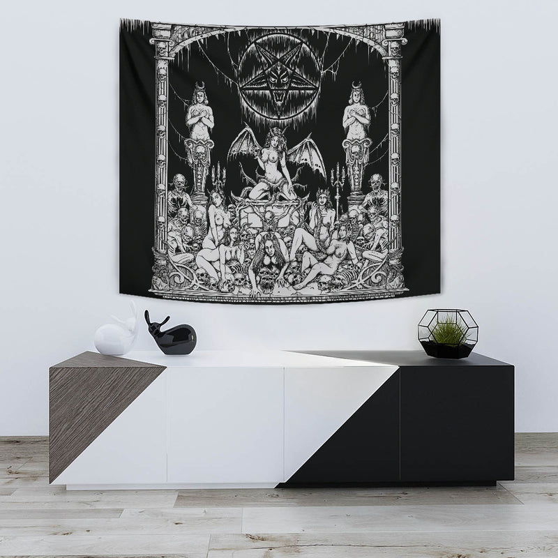 Satanic Pentagram Skull Sexy Winged Demon Welcome To Hell's Pearly Pleasure Gates Large Wall Decoration Tapestry