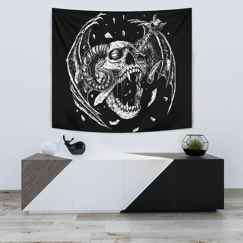 Skull Exploding Demon Dagger Large Wall Tapestry Demon Wing Version
