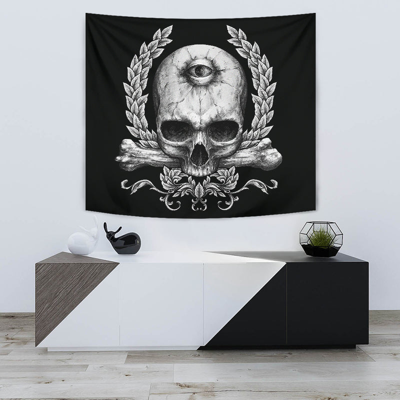 Skull Cyclops Large Wall Decoration Tapestry Black And White