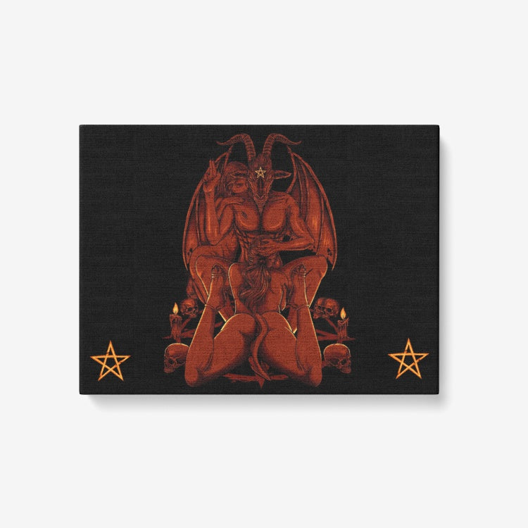 Skull Satanic Baphomet Goat Satanic Pentagram Satanic Cross Lust God Trinity 1 Piece Canvas Wall Art for Living Room - Framed Ready to Hang 24"x18"