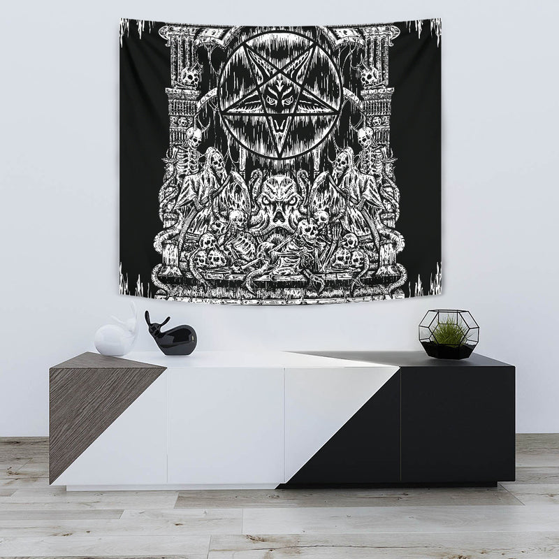 Skull Satanic Pentagram Shrine Huge Wall Tapestry